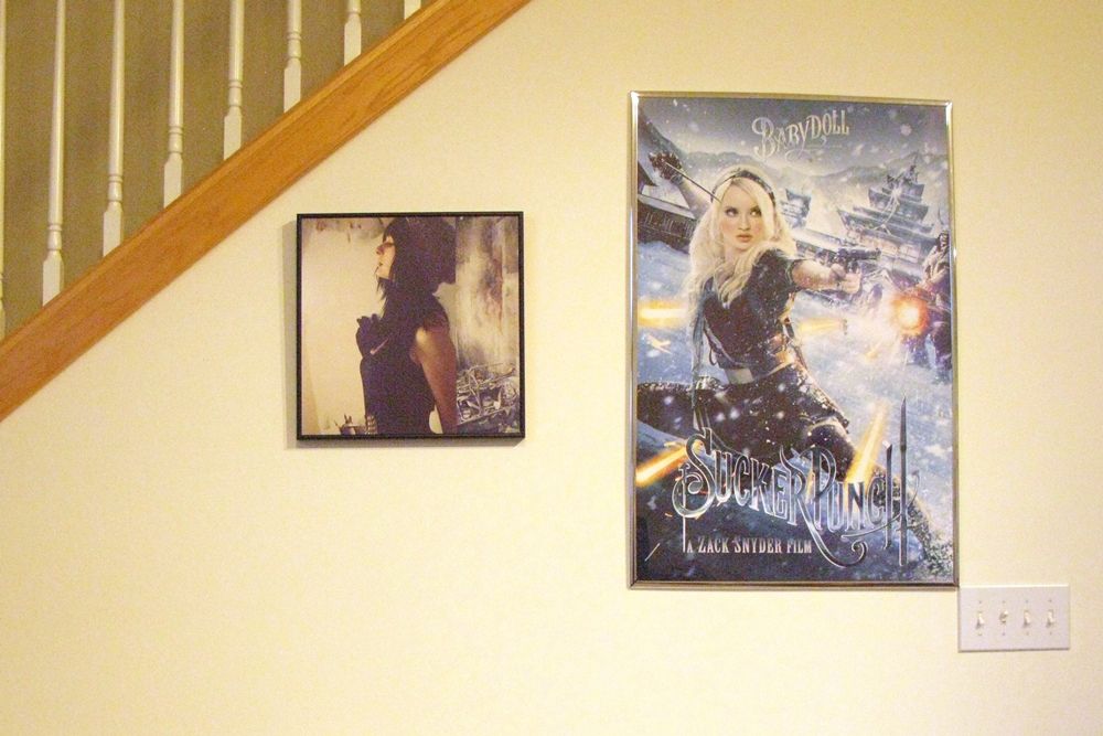 The left picture on the wall is an art print of the photograph “white trash beautiful” by an extraordinary photographer Sabrina Cichy. The right picture is one of the posters for the brilliant but / hence not appreciated movie Sucker Punch by Zack Snyder with Emily Browning in the leading role.